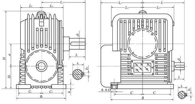 PW型平面二次包络环面蜗杆减速器(GB/T16449—1996)其蜗齿面是以一个平面为母面,通过相对圆周运动,包络出环面蜗杆的齿面,再以蜗杆的齿面为母线,通过相对运动包络出蜗轮的齿面,称为平面二次包络环面蜗杆副。包括PWU、PWO、PWS型三种型式,适用于冶金、矿山、起重、运输、石油、化工、建筑等行业机械设备的减速传动。